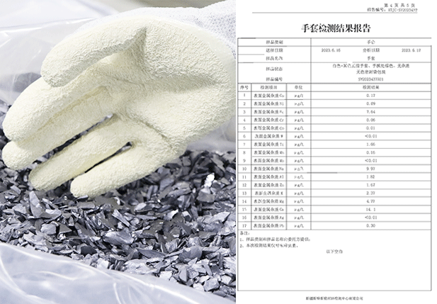 手套經(jīng)過特殊工藝處理,通過驗(yàn)證將手套放置氮?dú)夤癞?dāng)中80H,手套接觸產(chǎn)品無任何氧化情況,經(jīng)權(quán)威機(jī)構(gòu)檢測氯元素及硫元素完全符合接觸電池片標(biāo)準(zhǔn),且不會在電池片上面留下任何指印。